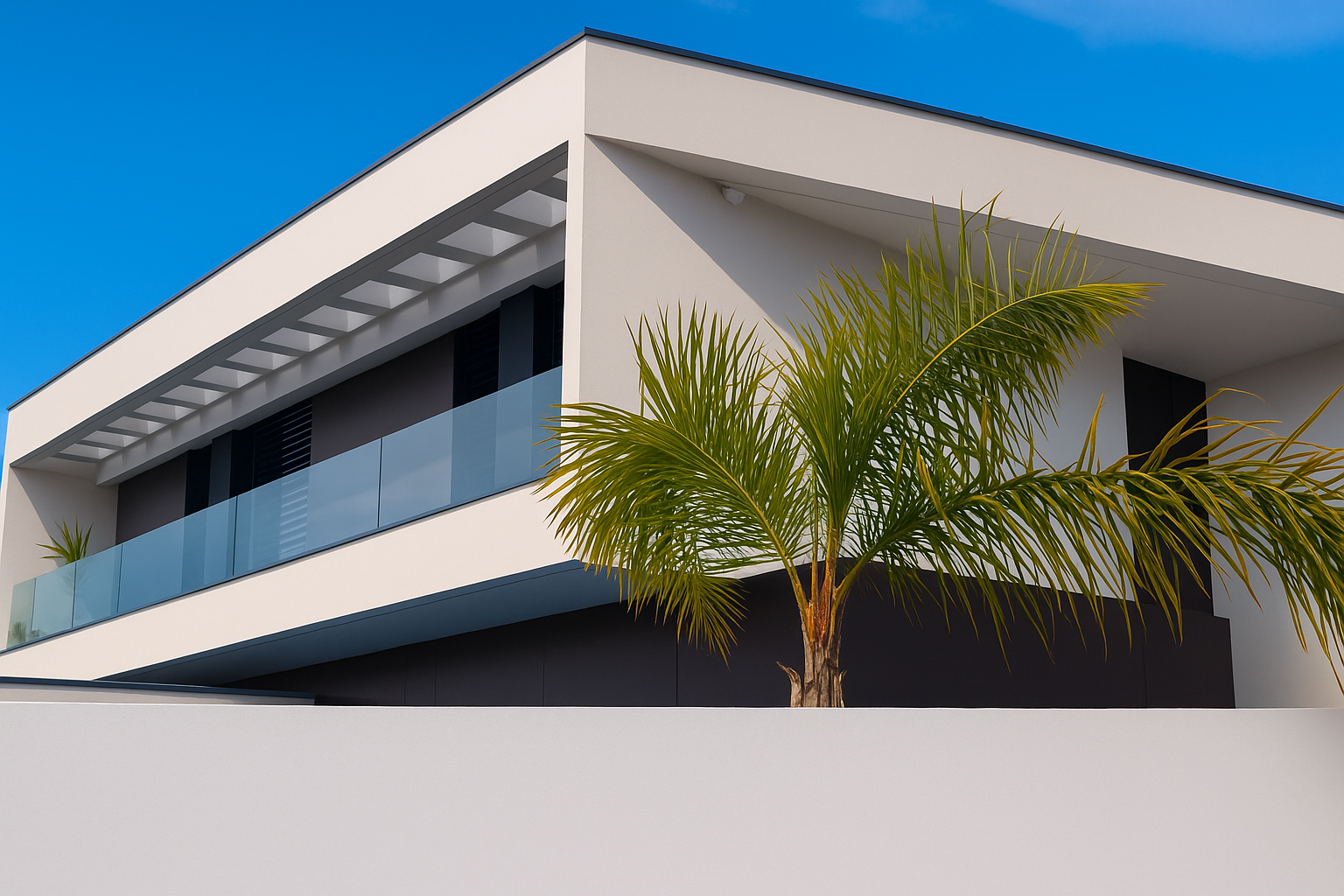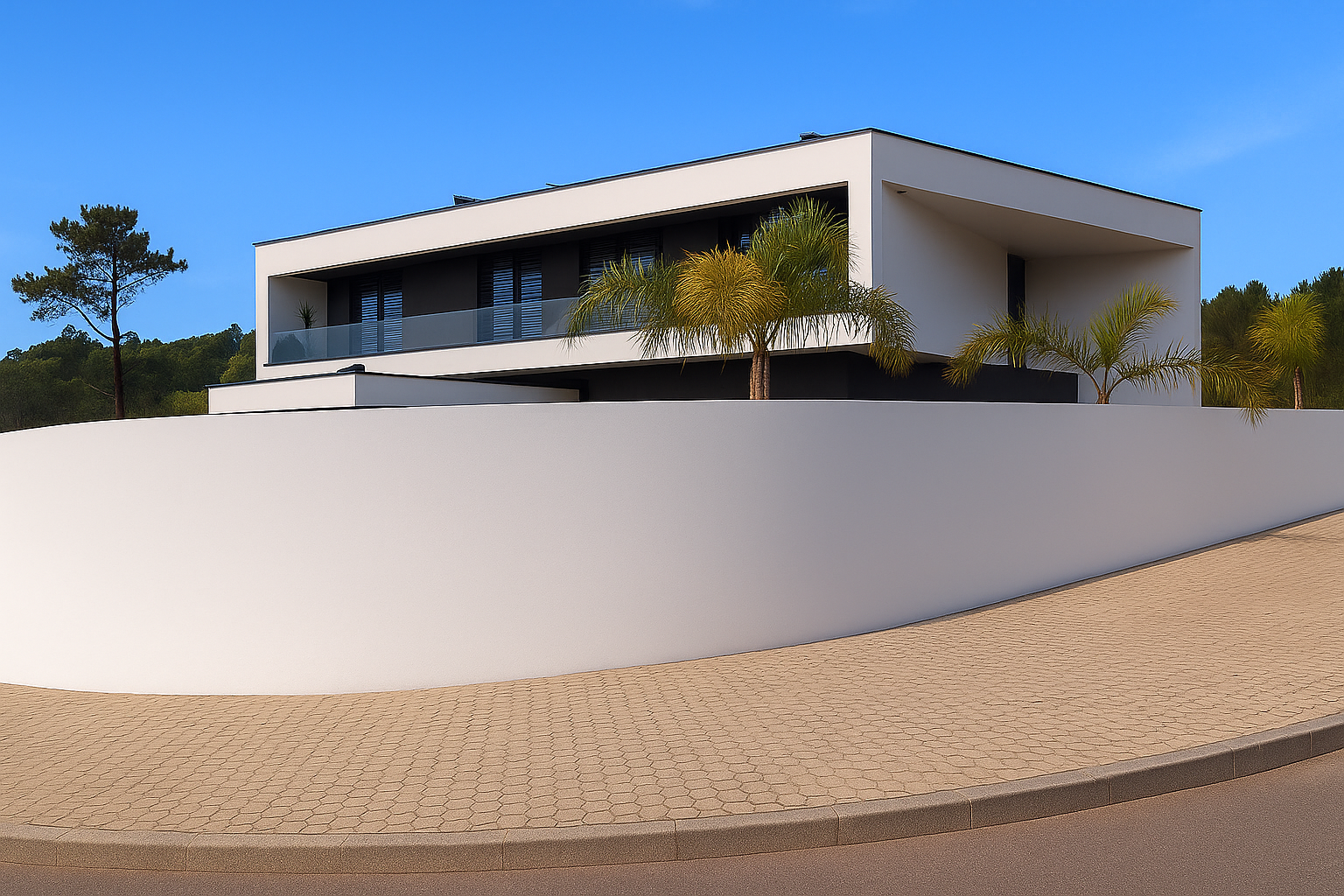 Esta vivenda unifamiliar expressa a essência da arquitetura contemporânea: linhas puras, volumes bem definidos e uma estética minimalista que valoriza a forma e a função.